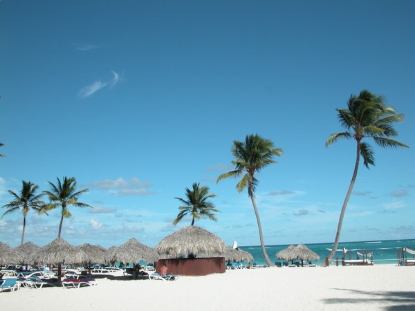 Beach and Palmhuts on Bavara Beach, Punta Cana